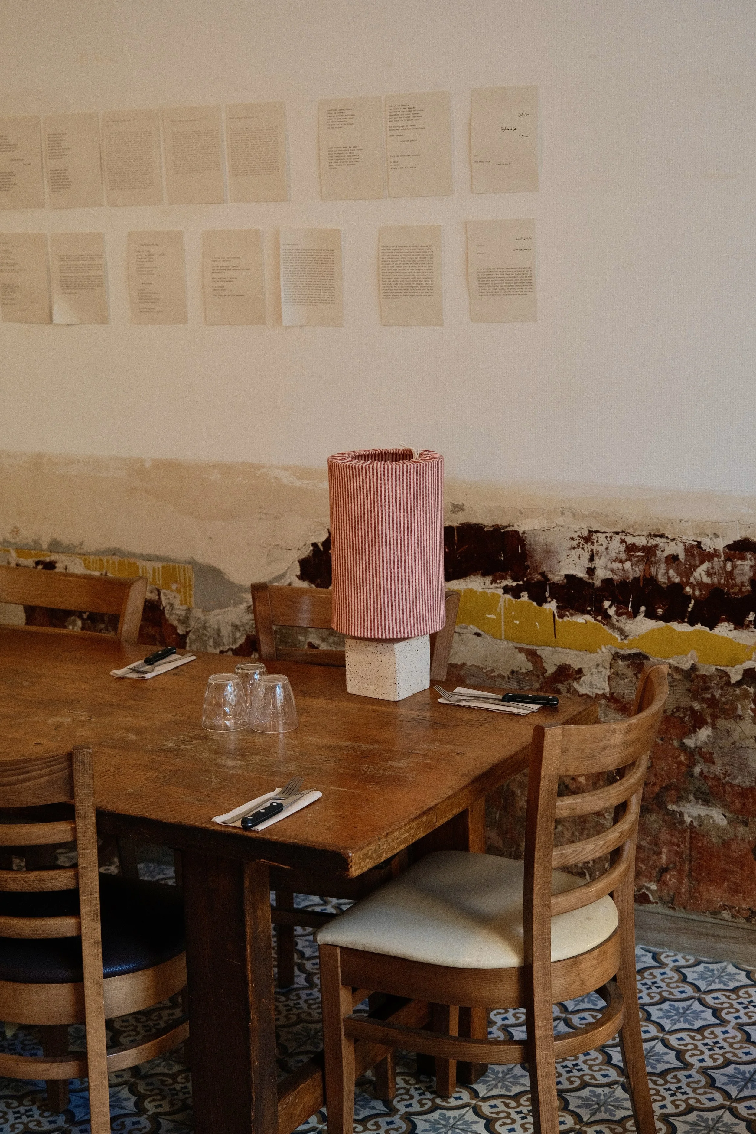 Certaines pièces sont créées à partir d’éléments chinés, réemployés ou détournés, pour prolonger leur vie autrement. Cette démarche s’inscrit dans une volonté de produire en petite série, en limitant les déchets et en minimisant l’impact de production.