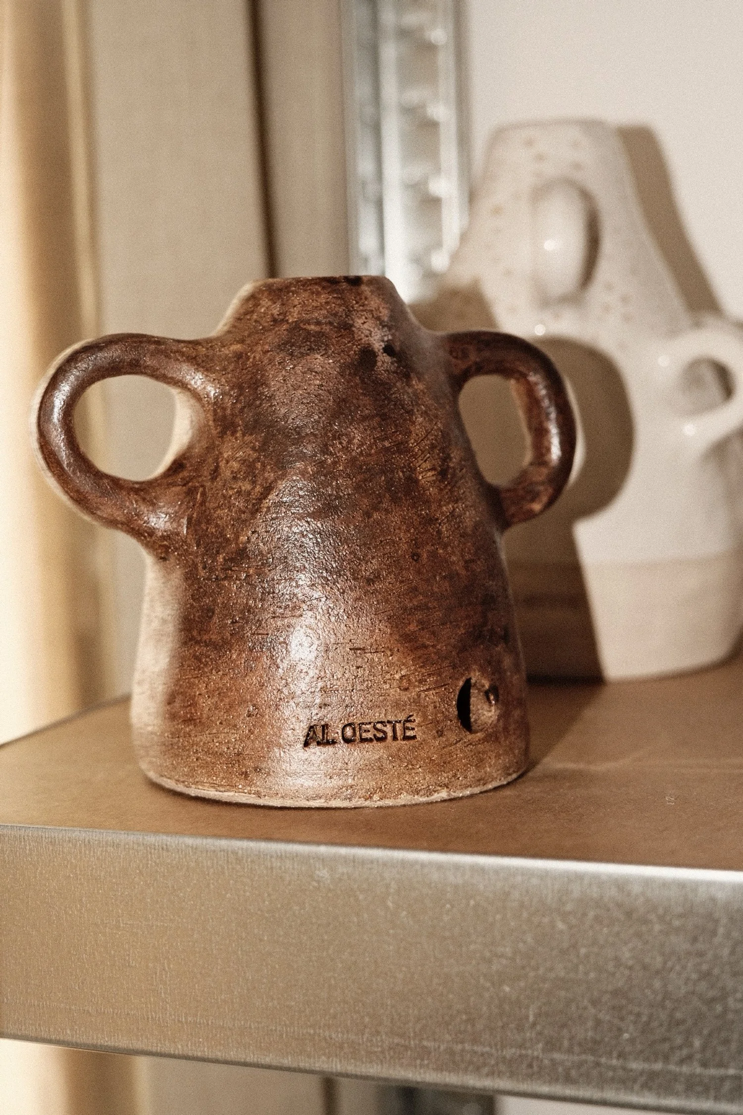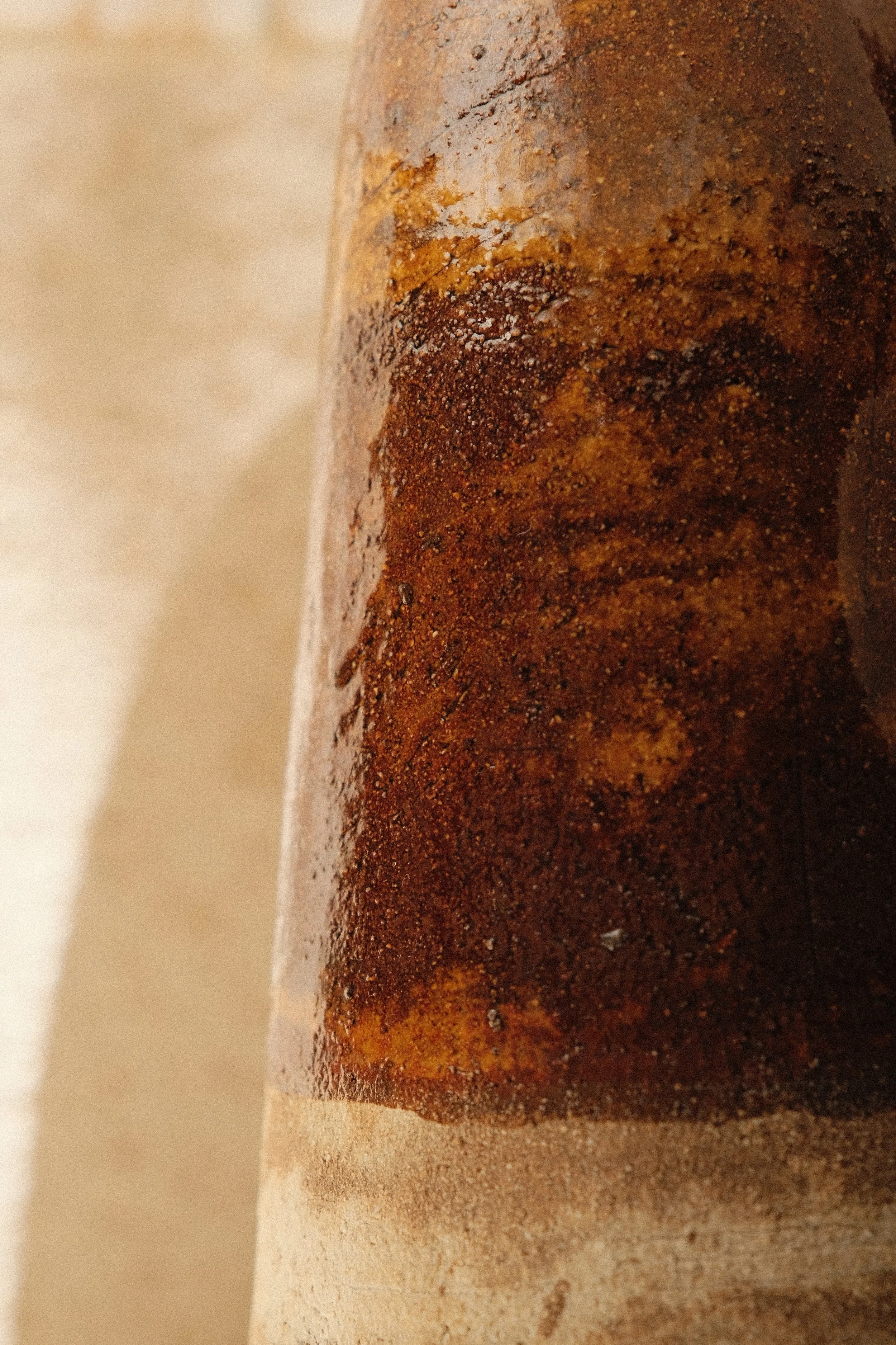 Grès blanc chamotté, terres mêlées, terre rousse ou terres plus granuleuses… plusieurs nuances et textures sont utilisées pour donner à chaque pièce son caractère.